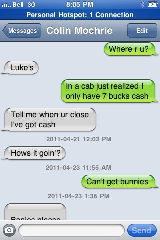 ReplyDeleteDeb, I love how completely random your texts with Colin are- really sweet and endearing, in a kooky way!